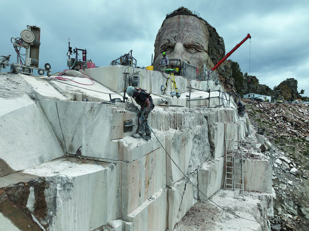 It’s been nearly 77 years since the first blast and some 94 years since Chief Standing Bear first dreamt of carving Crazy Horse. The Mountain Carving continues to demand vision and perseverance. Obstacles still abound. Causes for frustration crop up. Yet the powerful founding vision and our heritage of perseverance continue to drive progress. We hope that our founders—and Crazy Horse himself—would be proud that we build on their legacy. In contrast to them, we have the incredible privilege to see much of what they envisioned taking shape before our very eyes. What follows are accounts and figures that highlight our recent efforts.