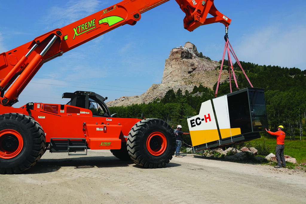The incoming tower crane has the potential to revolutionize access on the Mountain. Without it, moving the robotic arm around the site would be impossible. Figure 4—a view from above Crazy Horse—provides a visual display of the working envelop of the tower crane. The tower crane’s range is compared to the much smaller range of our telehandler (“Manitou”), illustrating the massive difference the tower crane will make.